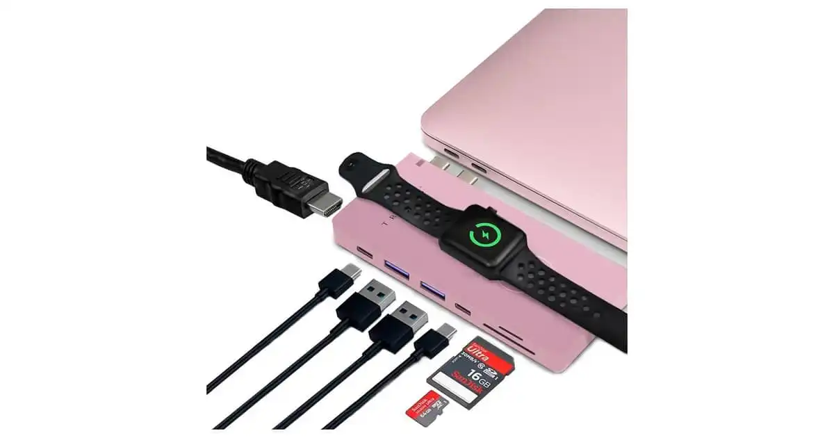 Trooss USB-C Hub for MacBook with wireless charger – Pink