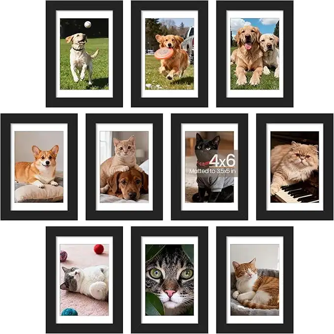 upsimples 4x6 Picture Frame Set of 10, Display Pictures 3.5x5 with Mat or 4x6 Without Mat, Multi Photo Frames Collage for Wall or Tabletop Display, Black