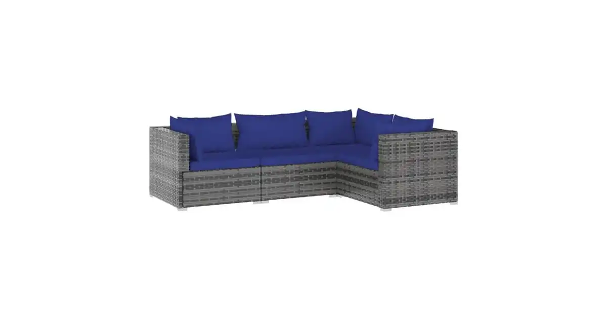 (3 products)vidaXL 4 Piece Garden Lounge Set with Cushions Poly Rattan Grey