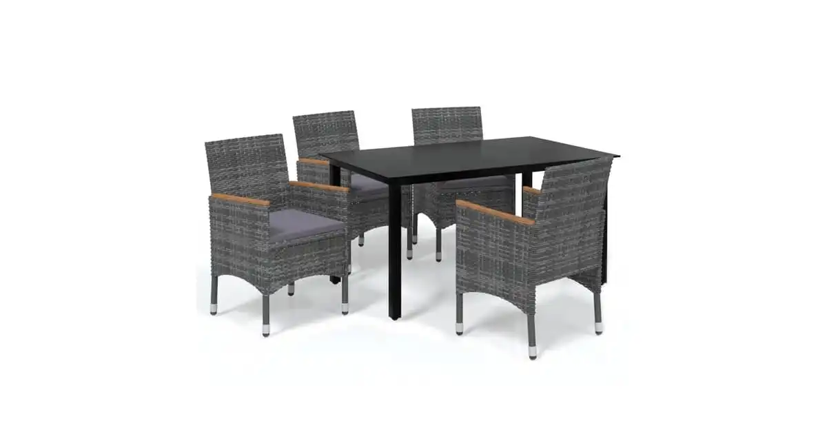 vidaXL 5 Piece Garden Dining Set with Cushions Poly Rattan Grey