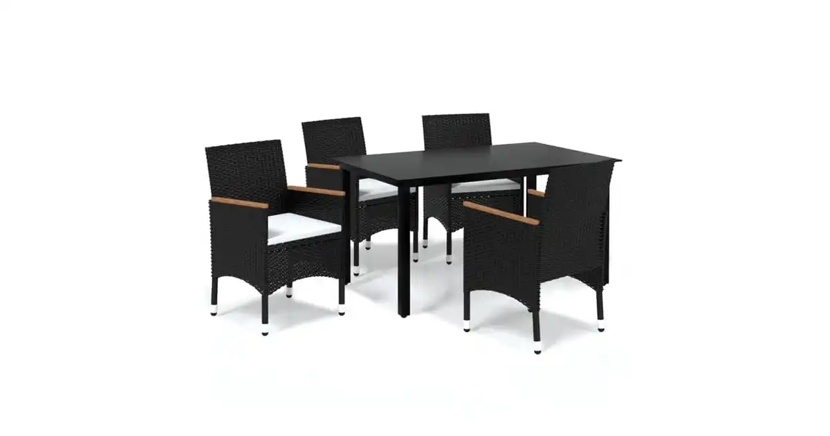 (3 products)vidaXL 5 Piece Garden Dining Set with Cushions Poly Rattan Black
