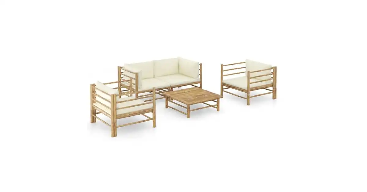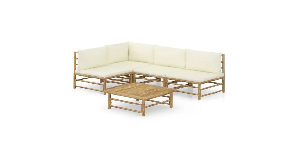 vidaXL 5 Piece Garden Lounge Set with Cream White Cushions Bamboo