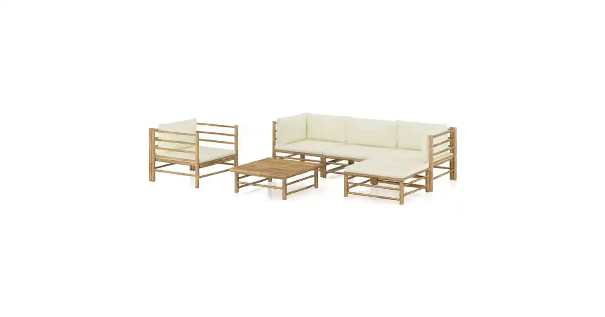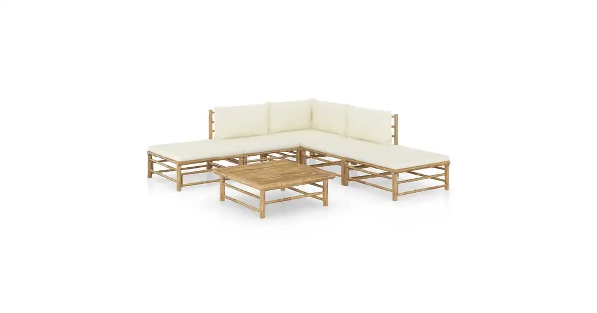 vidaXL 6 Piece Garden Lounge Set with Cream White Cushions Bamboo