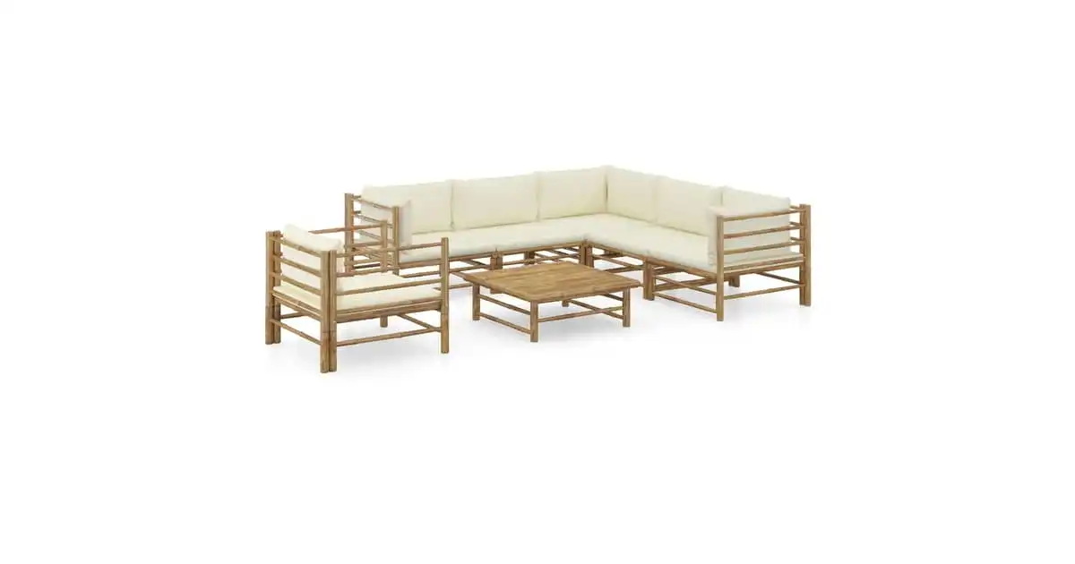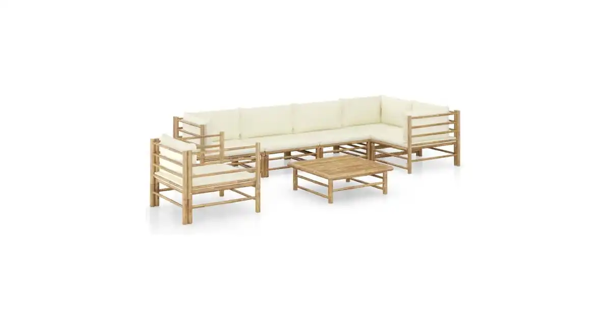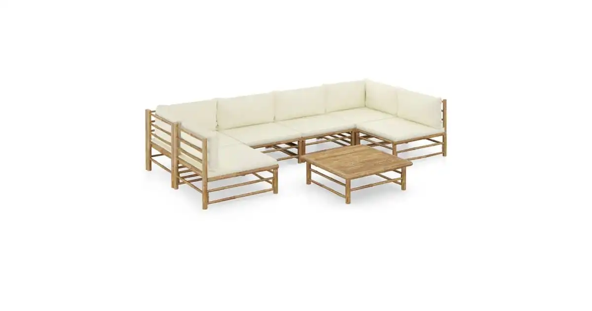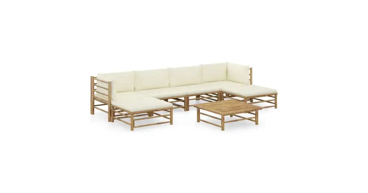 vidaXL 7 Piece Garden Lounge Set with Cream White Cushions Bamboo