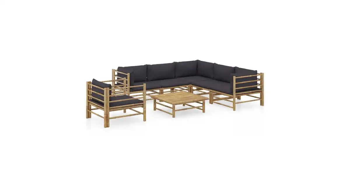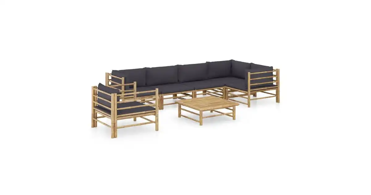 vidaXL 7 Piece Garden Lounge Set with Dark Grey Cushions Bamboo