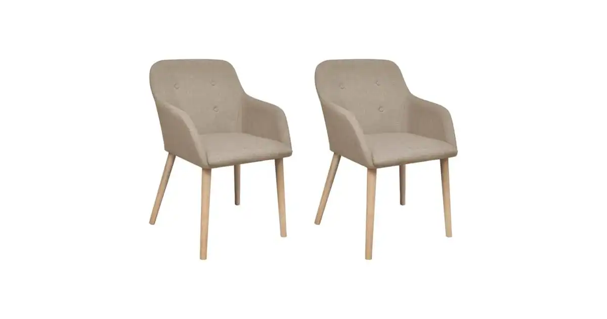 vidaXL Oak Indoor Fabric Dining Chair Set 2 pcs with Armrest Beige