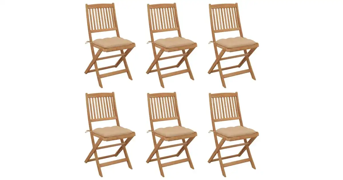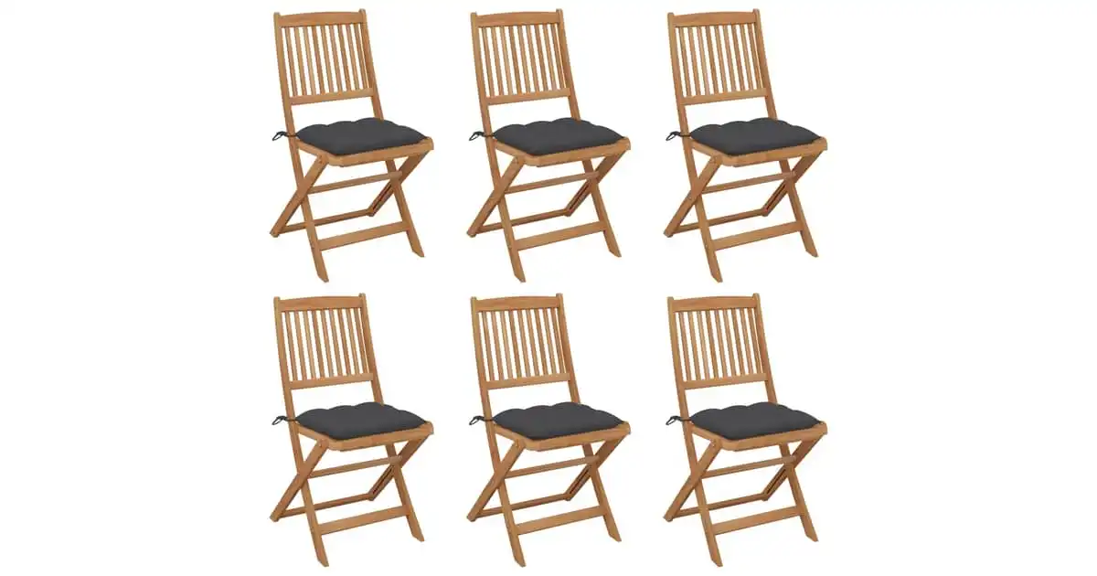 (11 products)vidaXL Folding Garden Chairs 6 pcs with Cushions Solid Acacia Wood