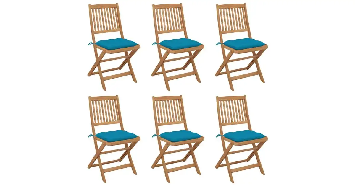 vidaXL Folding Garden Chairs 6 pcs with Cushions Solid Acacia Wood