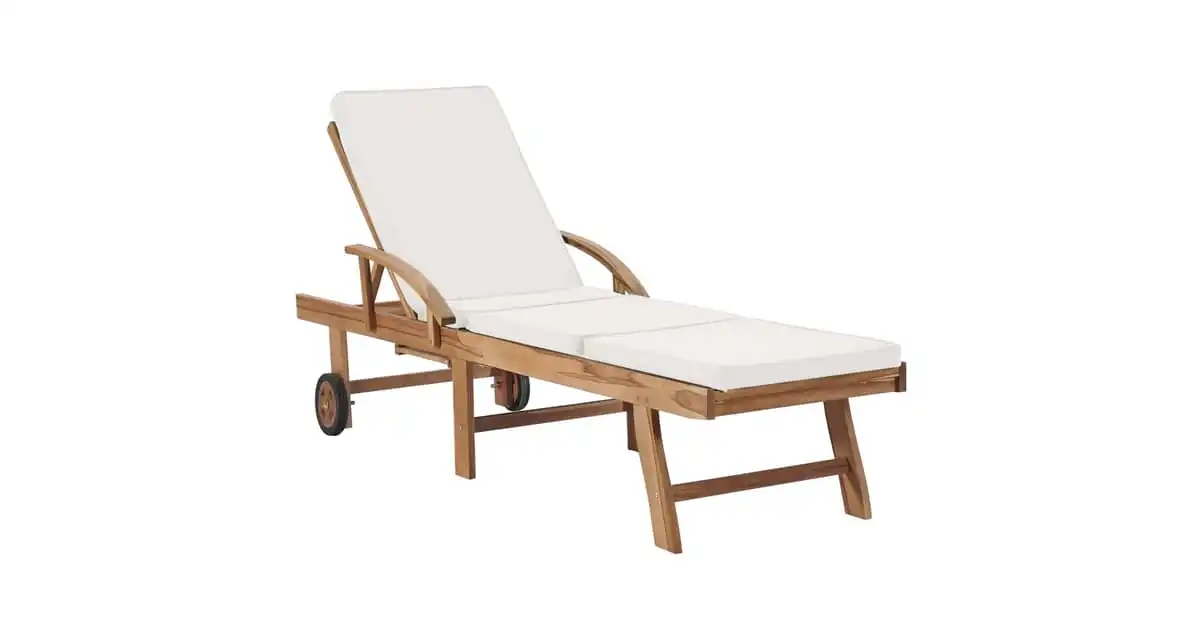 vidaXL Sun Lounger with Cushion Solid Teak Wood Cream