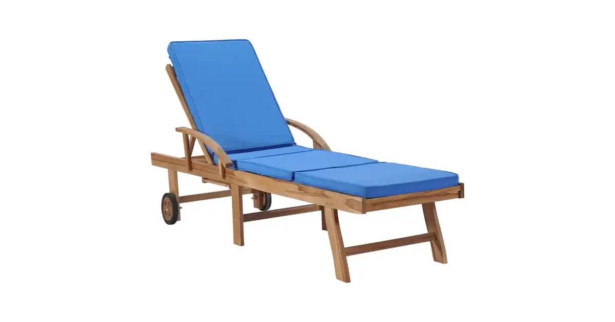 vidaXL Sun Lounger with Cushion Solid Teak Wood Blue
