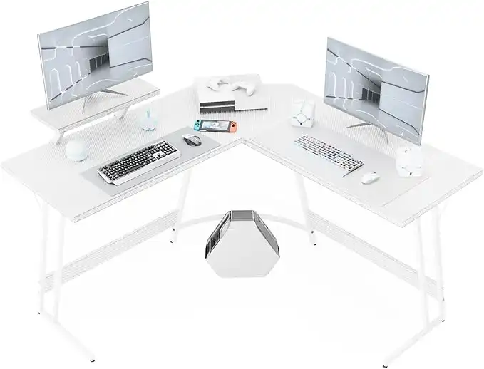 (2 products)WWI Gaming Desk Computer Desk Office Desk 130cm L Shaped Desk with Carbon Fiber Surface Corner Desk Study Desk with Removable Monitor Stand (Black)