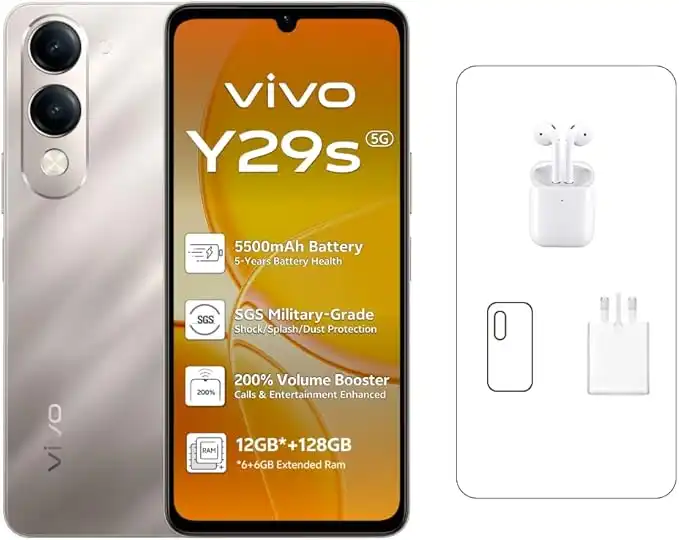 (1 product)Y29s AI 5G Titanium Gold 6GB RAM 128GB With Exclusive TWS (Charger and Case Inside Phone Box) - Middle East Version